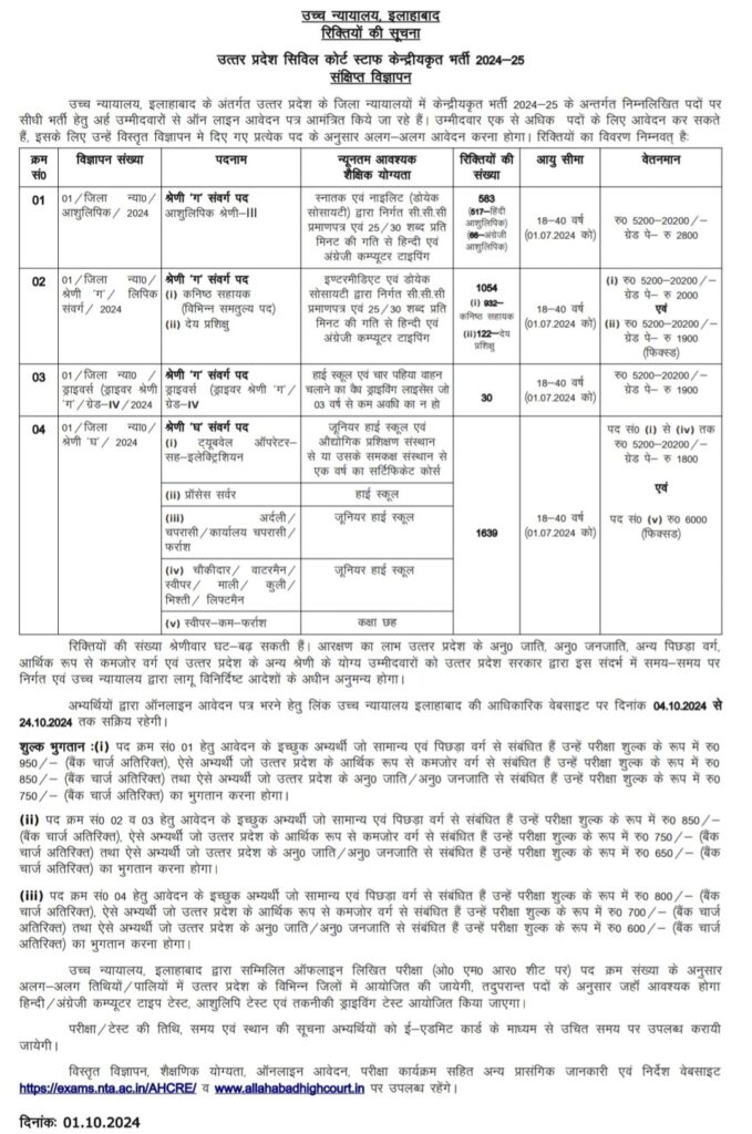 इलाहाबाद हाई कोर्ट भर्ती 2024: पदों की जानकारी