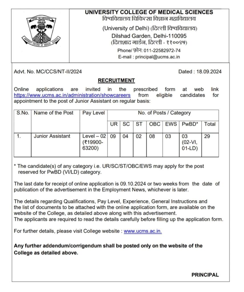 दिल्ली यूनिवर्सिटी जूनियर असिस्टेंट भर्ती 2024